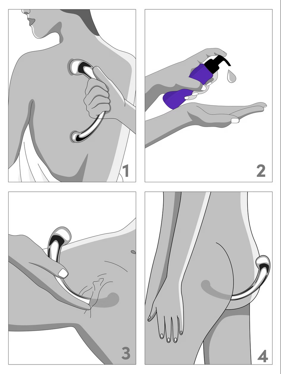 Double-ended for variation of sensation, and curved for precise stimulation